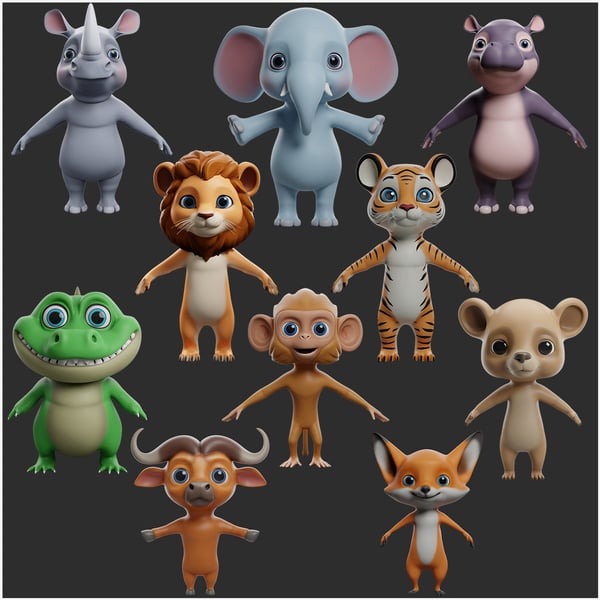 🌻10 Wild Animals Cartoon - ( Monkey, Tiger, Lion, Elephant, Crocodile, Bear......)