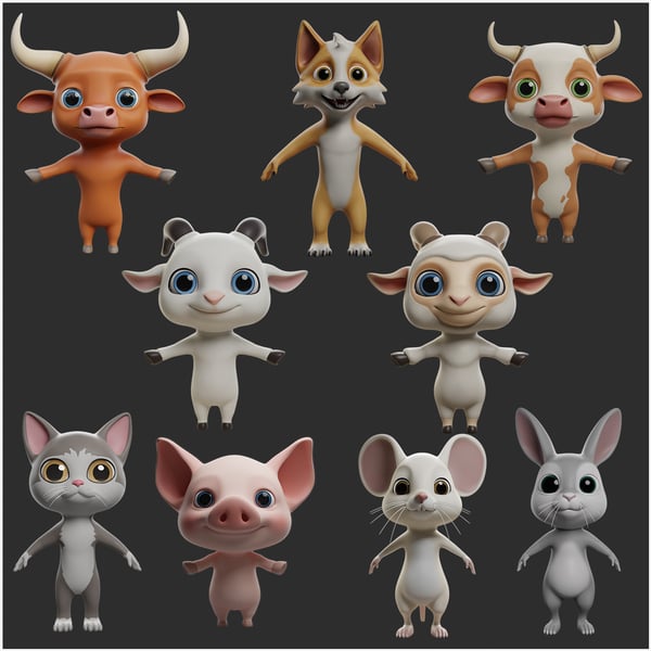 🌻9 Domestic Animals Cartoon - ( Dog, Cat, Pig, Rabbit, Cow, Mouse...)