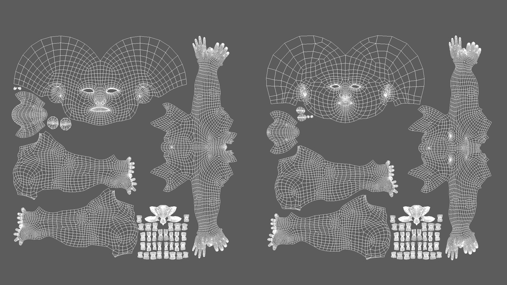 - unwrapped Uvs for texturing